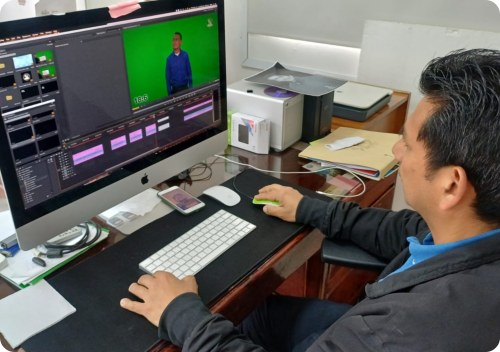 ilustrador realizando los dibujos que acompañan los videos de la Biblia y por último, la edición para posteriormente publicar los videos en la web.